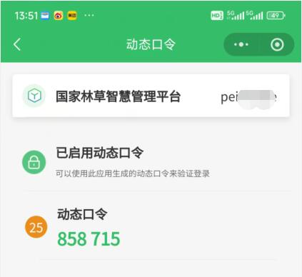 点击“是”,打开“国家林草资源智慧管理平台”,通过安全验证来获取动态口令秘钥,